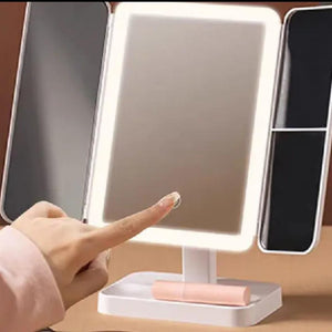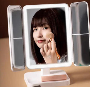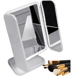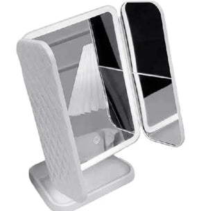 ABS Material LED Folding Vanity Mirror for Women Travel, Makeup Vanity Mirror with Touch Screen, Black