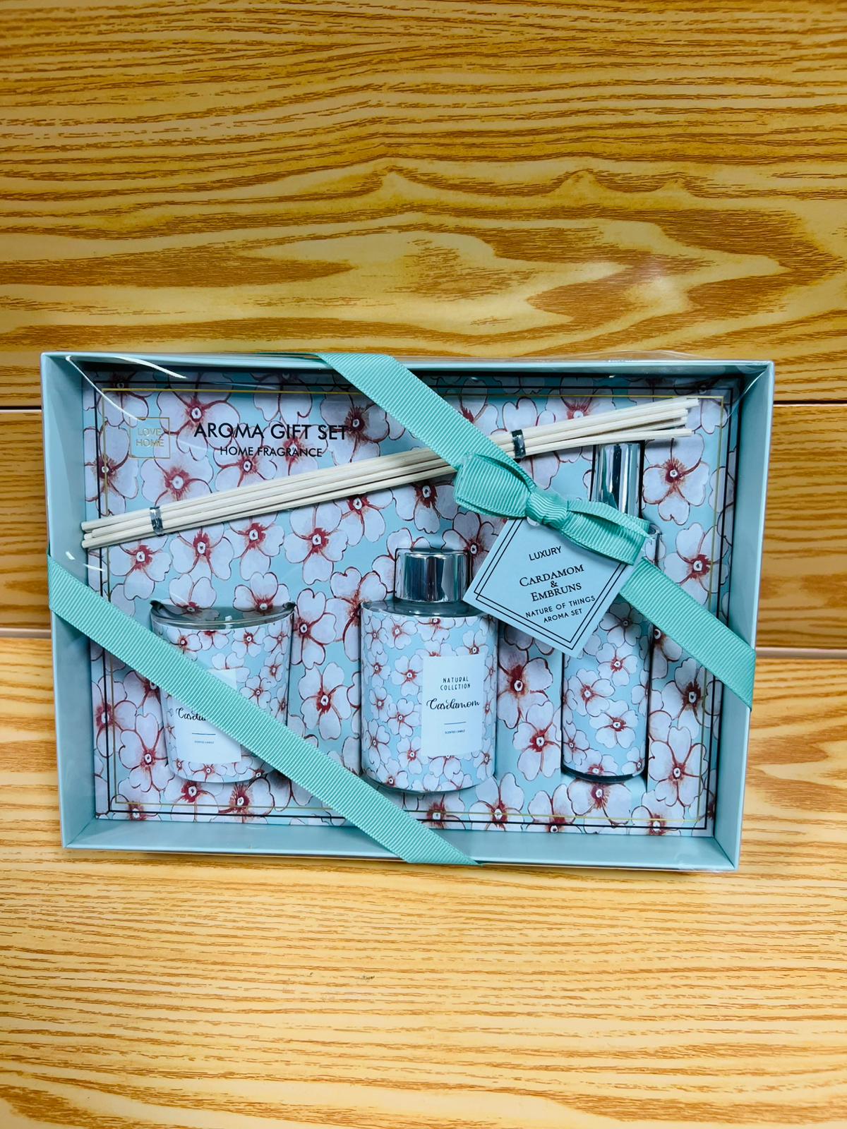 Transform your living space with this thoughtfully curated Aroma Home Fragrance Gift Set. Featuring a 60ml reed diffuser for continuous, subtle fragrance, a 30ml room spray for instant freshness, and a premium scented candle, this collection delivers layered aromatic experiences throughout your home. Each product works harmoniously to create an inviting atmosphere while offering flexibility in how you enjoy your chosen scent. An ideal gift for fragrance enthusiasts or a refined addition to your own home décor.