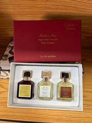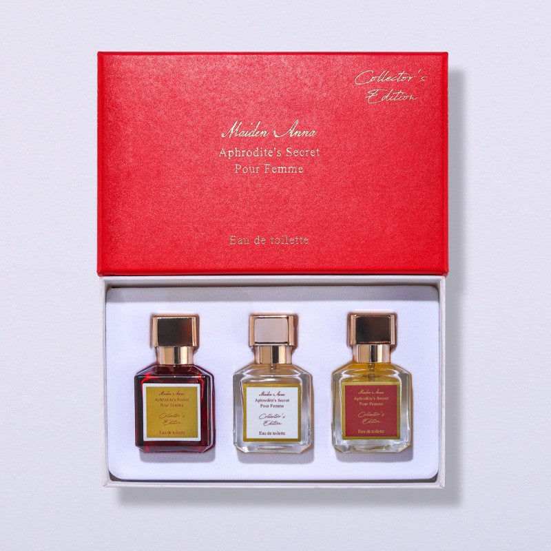 Embrace timeless elegance with the Maiden Anna three-piece perfume collection, featuring 30ml bottles of Aphrodite's Secret Pour Femme. This expertly curated set presents a refined selection of fragrances in generous travel-friendly sizes, perfect for those who appreciate olfactory sophistication. Each composition delivers distinctive character while maintaining harmonious balance, allowing you to adapt your scent to occasion and mood. An exceptional choice for fragrance aficionados seeking quality, versatility, and the luxury of exploration within a single, beautifully coordinated ensemble.