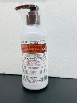 SADOER Coconut Oil Body Lotion combines lightweight hydration with the nourishing properties of pure coconut oil. This expertly formulated lotion absorbs quickly into skin, delivering deep moisture without a greasy residue. Ideal for daily use, it leaves your skin feeling soft, supple, and delicately scented. Perfect for those seeking natural, effective body care that balances hydration with comfort.
