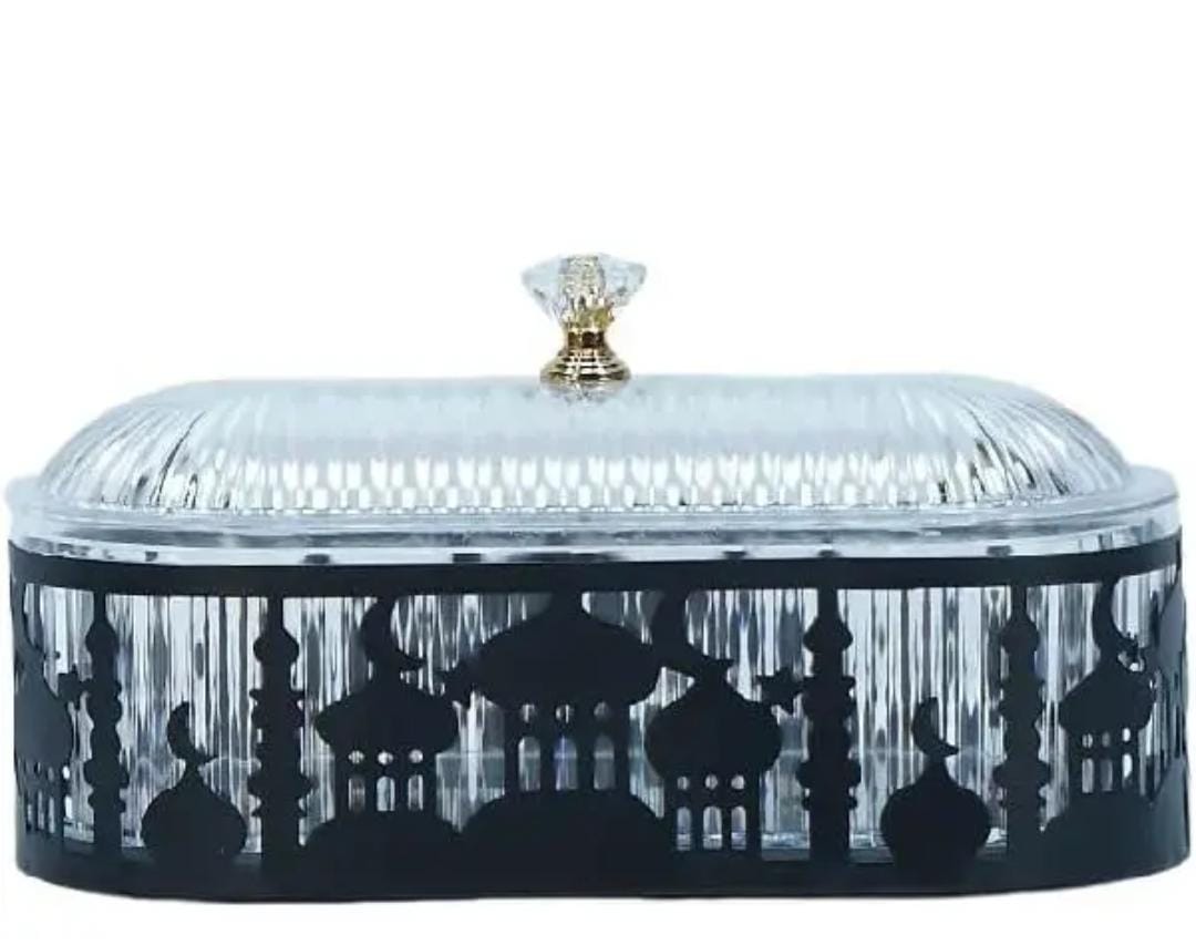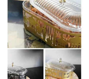 Snack Tray with Lid for Kitchen Entertaining - Candy Serving Jar for Dried Fruits - Tin, Plate Container Storage Canister